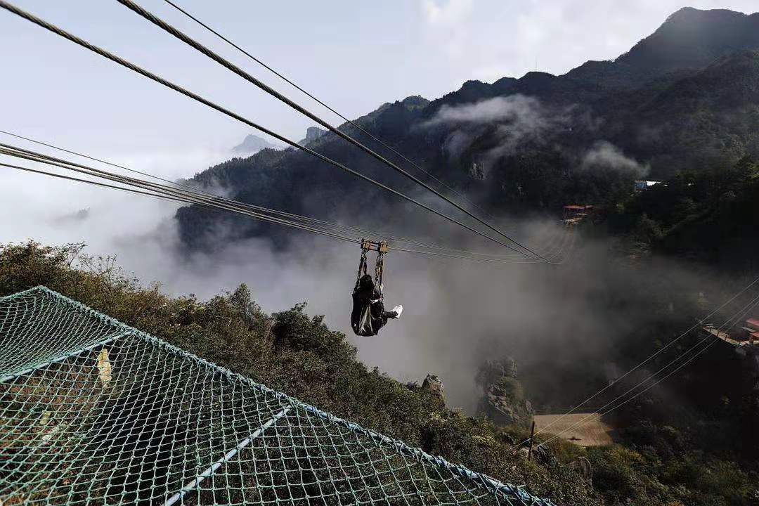 滑索作为一种辅助的交通游乐设施其发展历程可追溯到远古时代,那时人们为了寻求跨越山谷、河流的捷径,运用悬吊的方式以藤条或竹编制而成的绳索,悬于空中载人载物,实现了跨越运行的目的;他作为一种过河、越岭的简单交通工具利用两点间的高低差所具有的优势,在两点间架设一个钢索,人们手持简易滑轮或类似物从高点滑到低点。